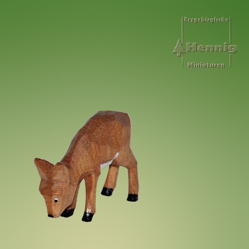 - Sehr schöne, original erzgebirgische Miniatur, gefertigt in Handarbeit. - Motiv: Reh - handbemaltes Holz - Höhe: ca. 2,5 cm