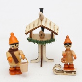 - Sehr schönes, original vogtländisches Produkt, gefertigt in Handarbeit.- Motiv: 1 Vogelhaus und 2 Winterkinder, 3tlg. Set, mit Stern, Mond & Laterne- Holz und Laserholz- L/B/H :2,5 x 2,5 x 8 cm
